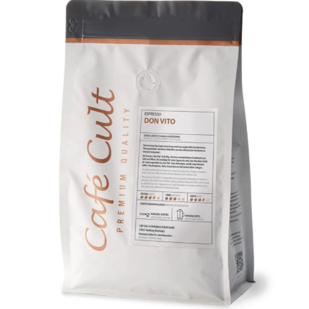 Esta mezcla de espresso de alta calidad “Don Vito” fue compuesta a partir de cafés de plantaciones brasileñas seleccionadas y finos cafés verdes de las tierras altas africanas y del sur de Asia. Un café 100% arábica garantizado.
